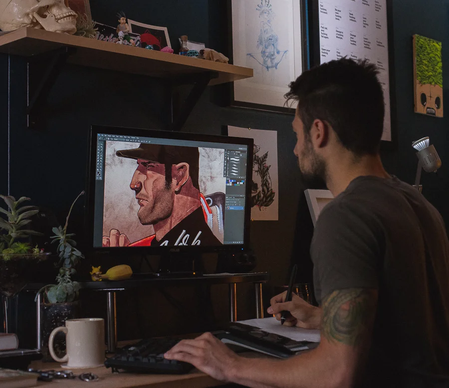 His work has been displayed in Times Square for Google, honored at the Society of Illustrators, and toured around the world with bands and magazines. Sean was formally trained at The Art Institute of Pittsburgh, graduating with best in show in 2012. He also spent his summer training at The Illustration Academy in 2015.