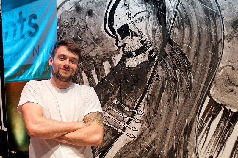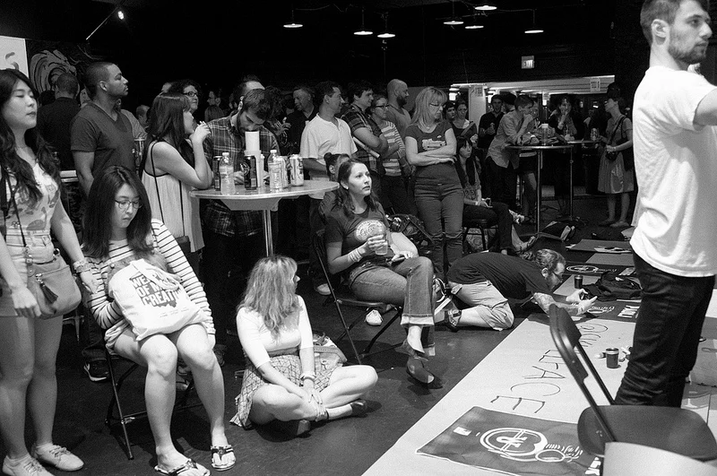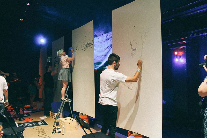 Adobe headed to WMCFest in Cleveland, Ohio to host Ink Wars, an analog drawing display of art on-the-fly with action set to the sounds of a DJ. Each of the eight contestants was given one hour, black ink, a blank canvas and a (surprise) theme.